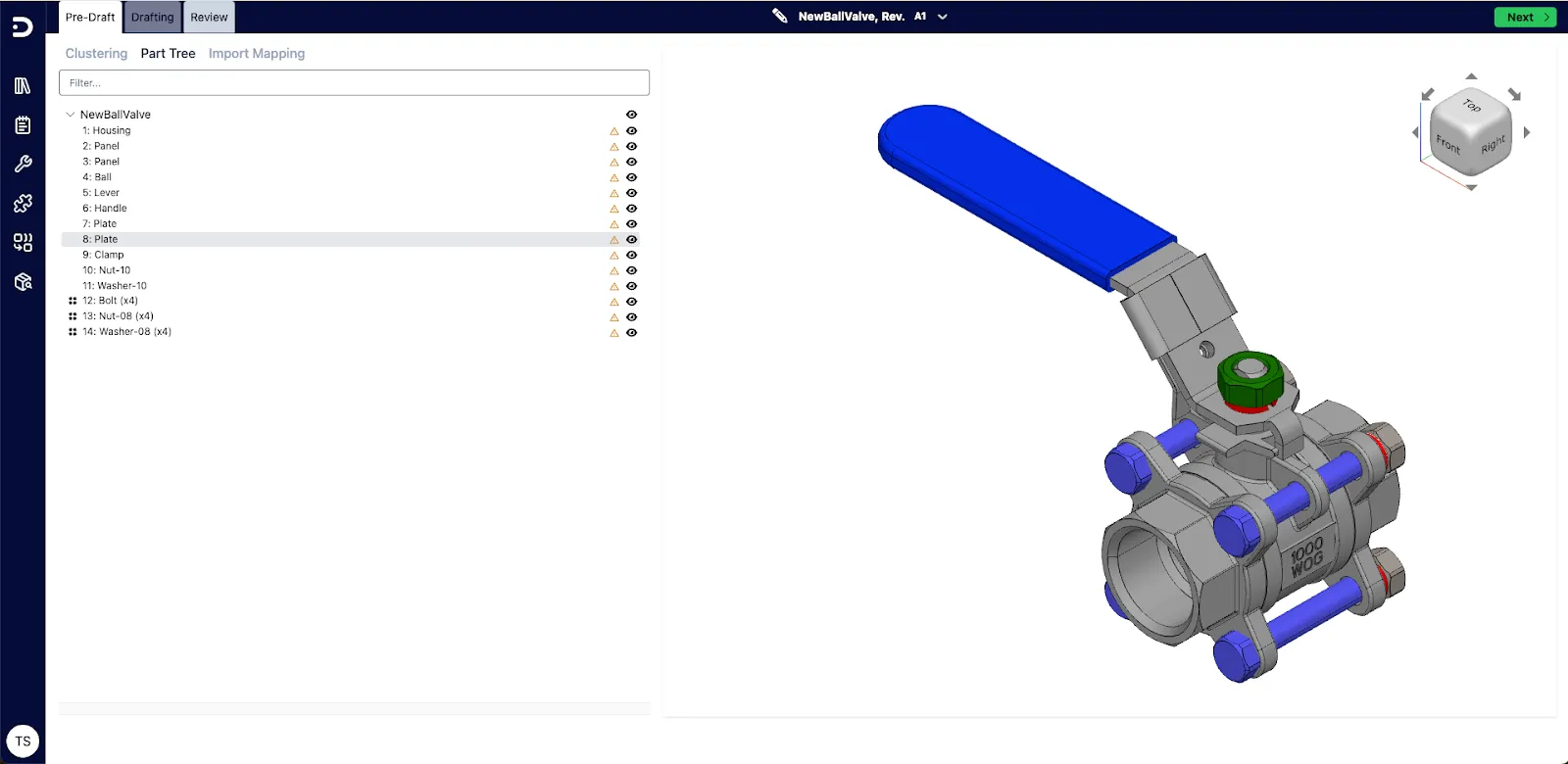 Leverage User-Friendly CAD Tools to Define Clusters and Assembly Constraints: BuildOS provides access to a set of inbuilt basic CAD tools tailored for work instruction creation, eliminating the need for specialized CAD software and advanced CAD expertise. Define groups of identical parts that are installed together as clusters which will inform BuildOS of your assembly constraints.