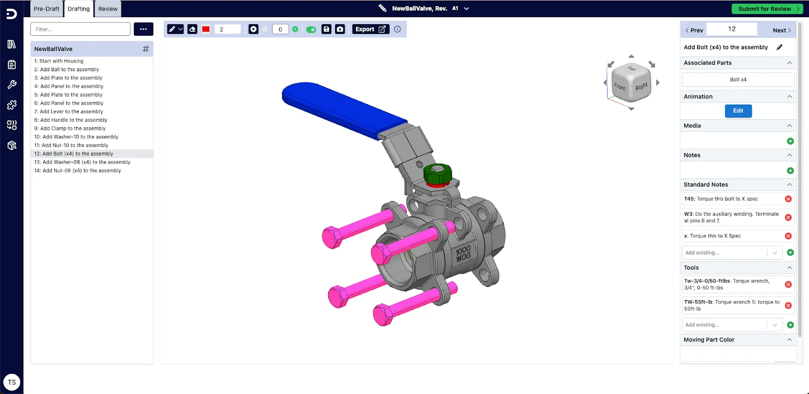 Attach Notes and Tools: Embed critical information directly into the relevant parts and steps, ensuring technicians and engineers have all the necessary details at their fingertips.